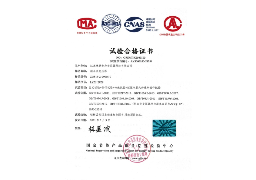 试验合格报告